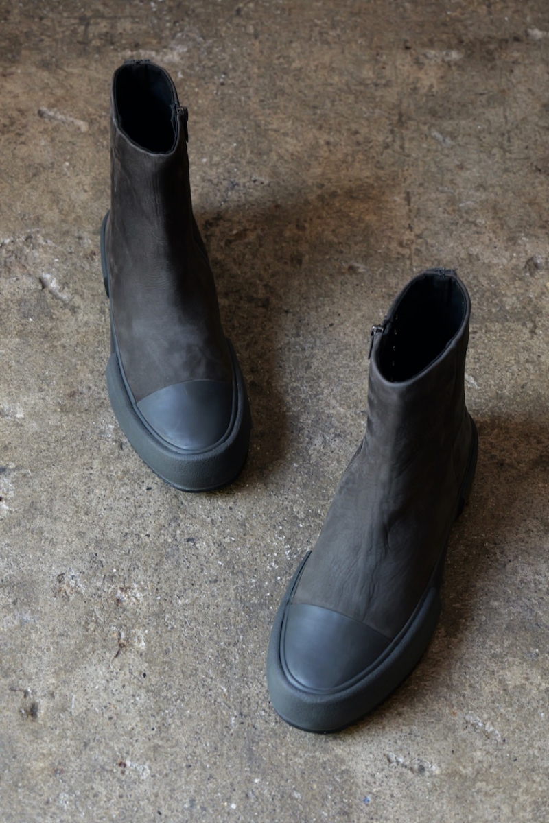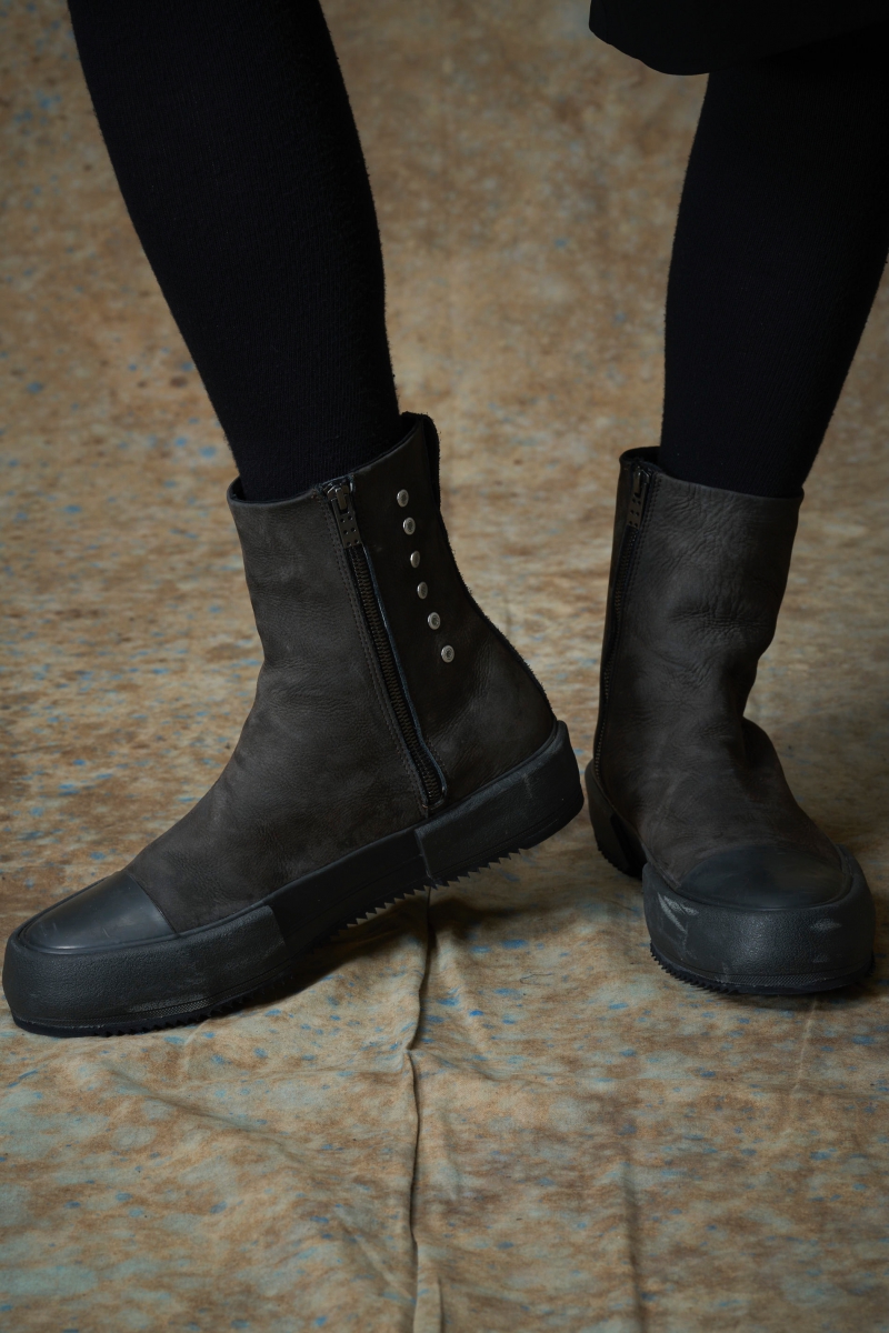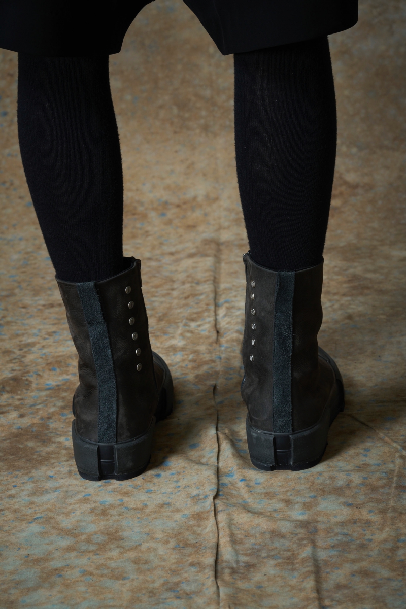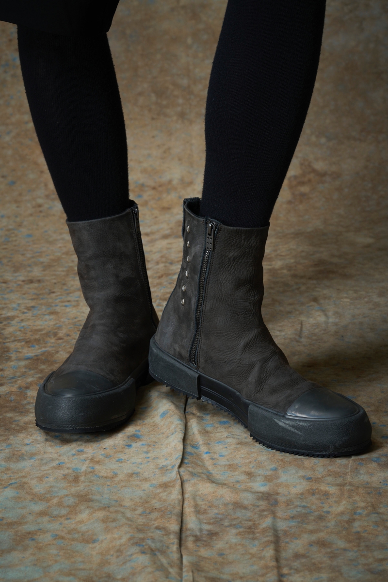 FW-SHCN. Sneaker Cow Nuback Leather. Charcoal × Gray. DEVOA.