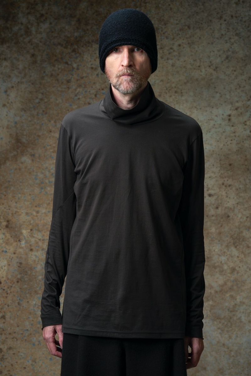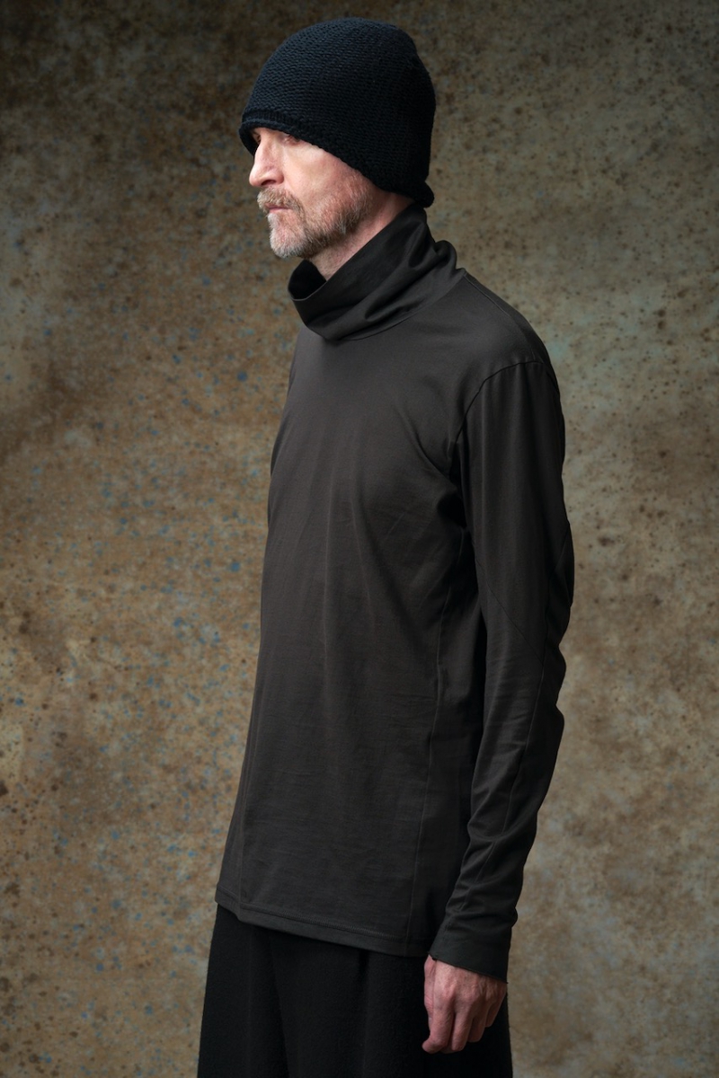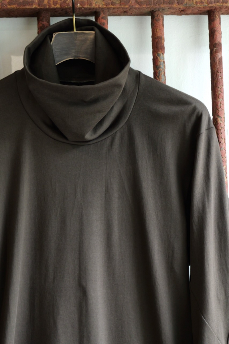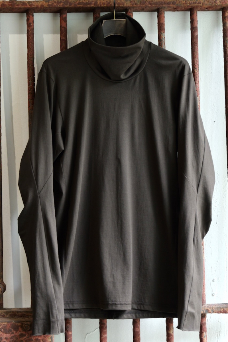 CSC-SVB5. High Neck Long Sleeve SUVIN Cotton Jersey. Khaki Gray. DEVOA.