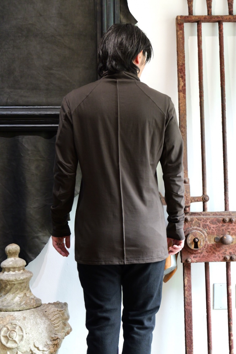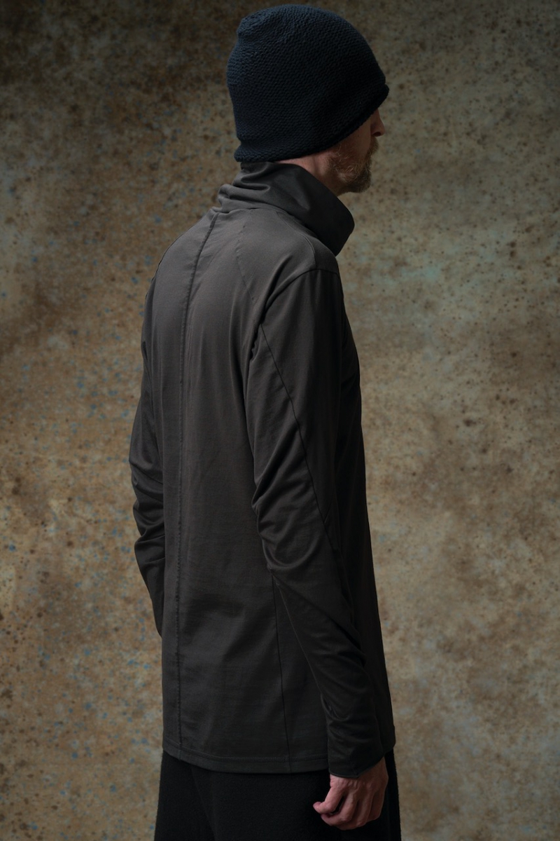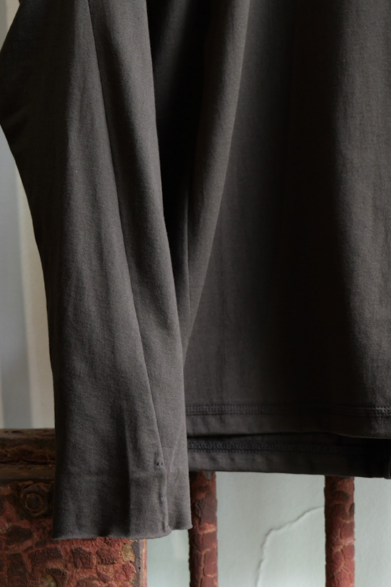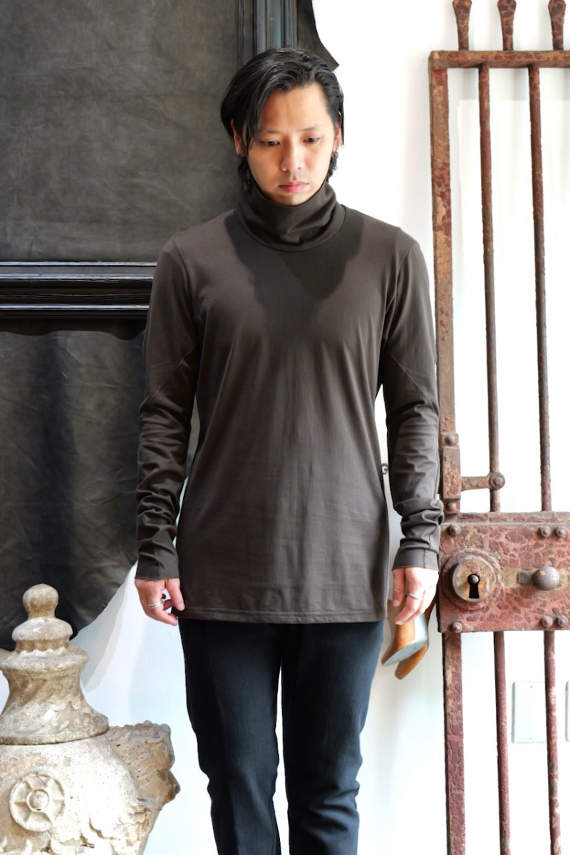 CSC-SVB5. High Neck Long Sleeve SUVIN Cotton Jersey. Khaki Gray. DEVOA.