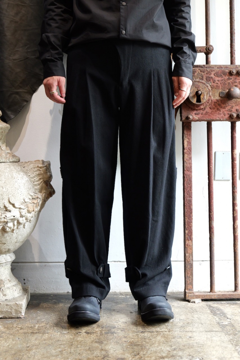 ボリュームを持たせたシルエットに加え、裾の太さを2段階調節することができるので