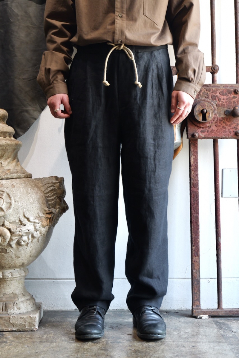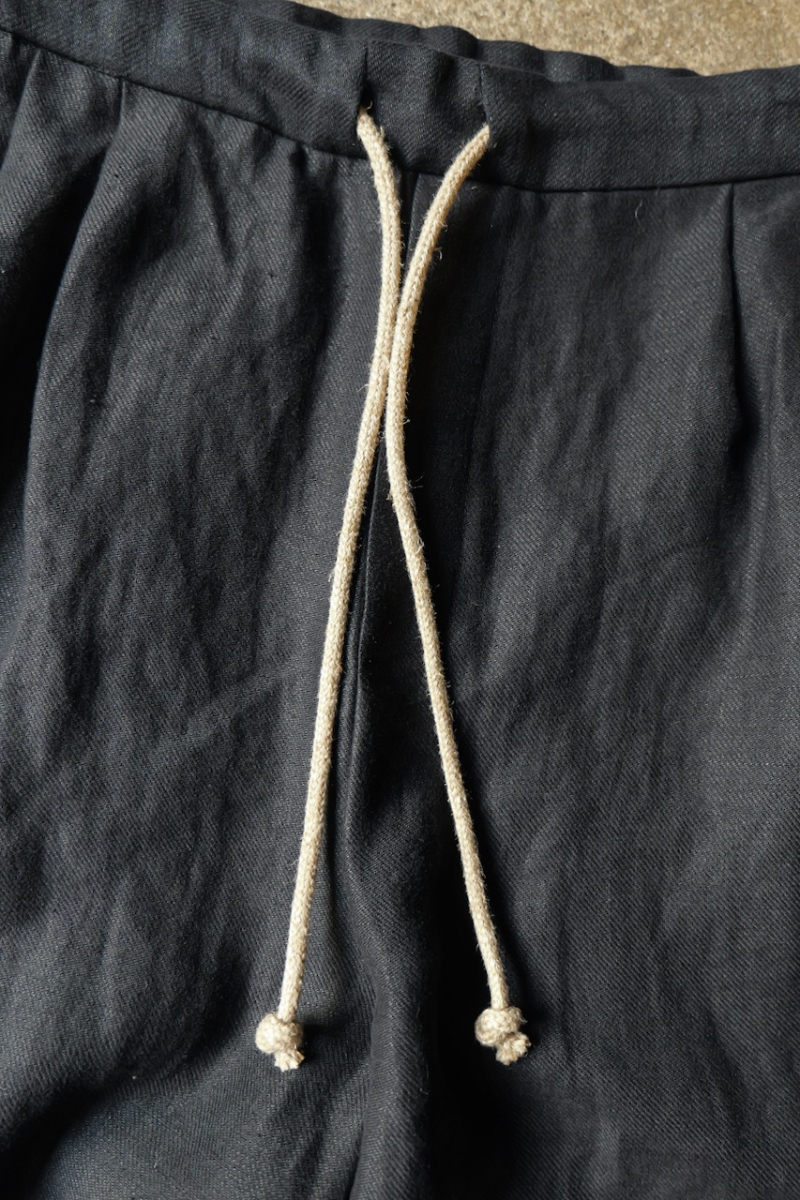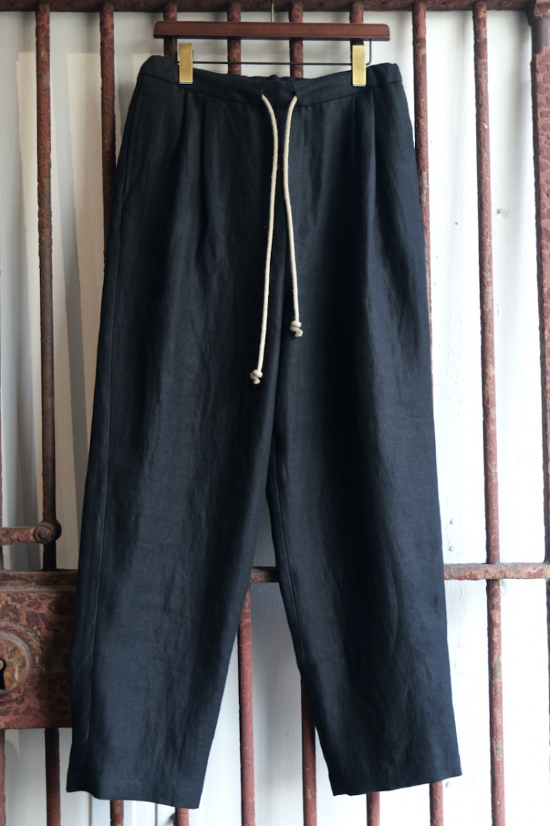 FABRIC WASHED LINEN DRAWSTRING 2TUCK TROUSERS.