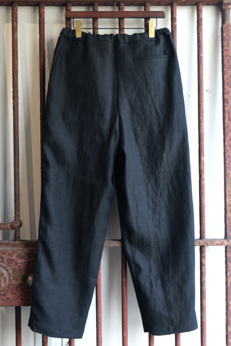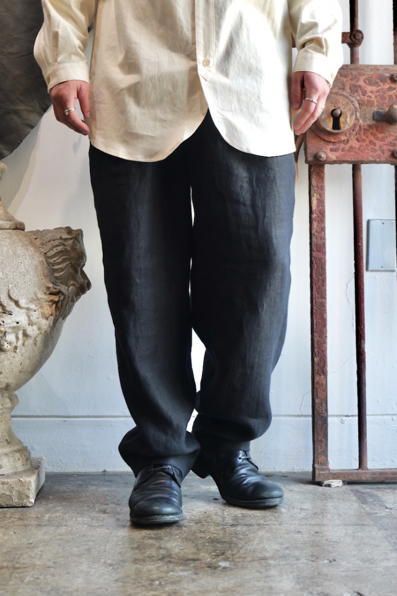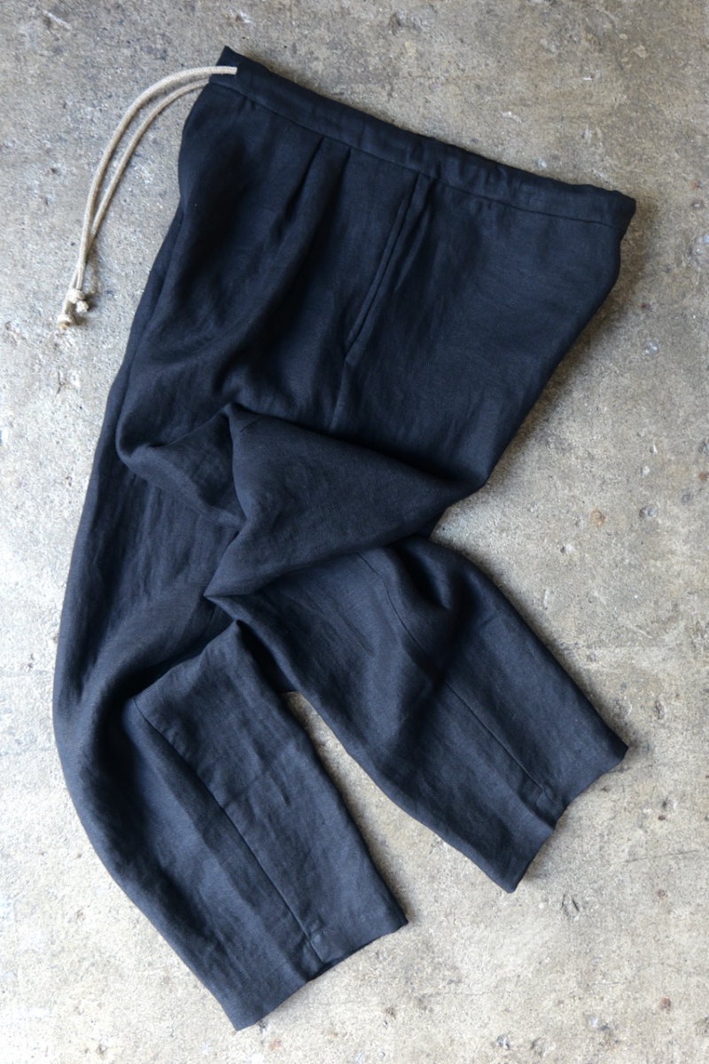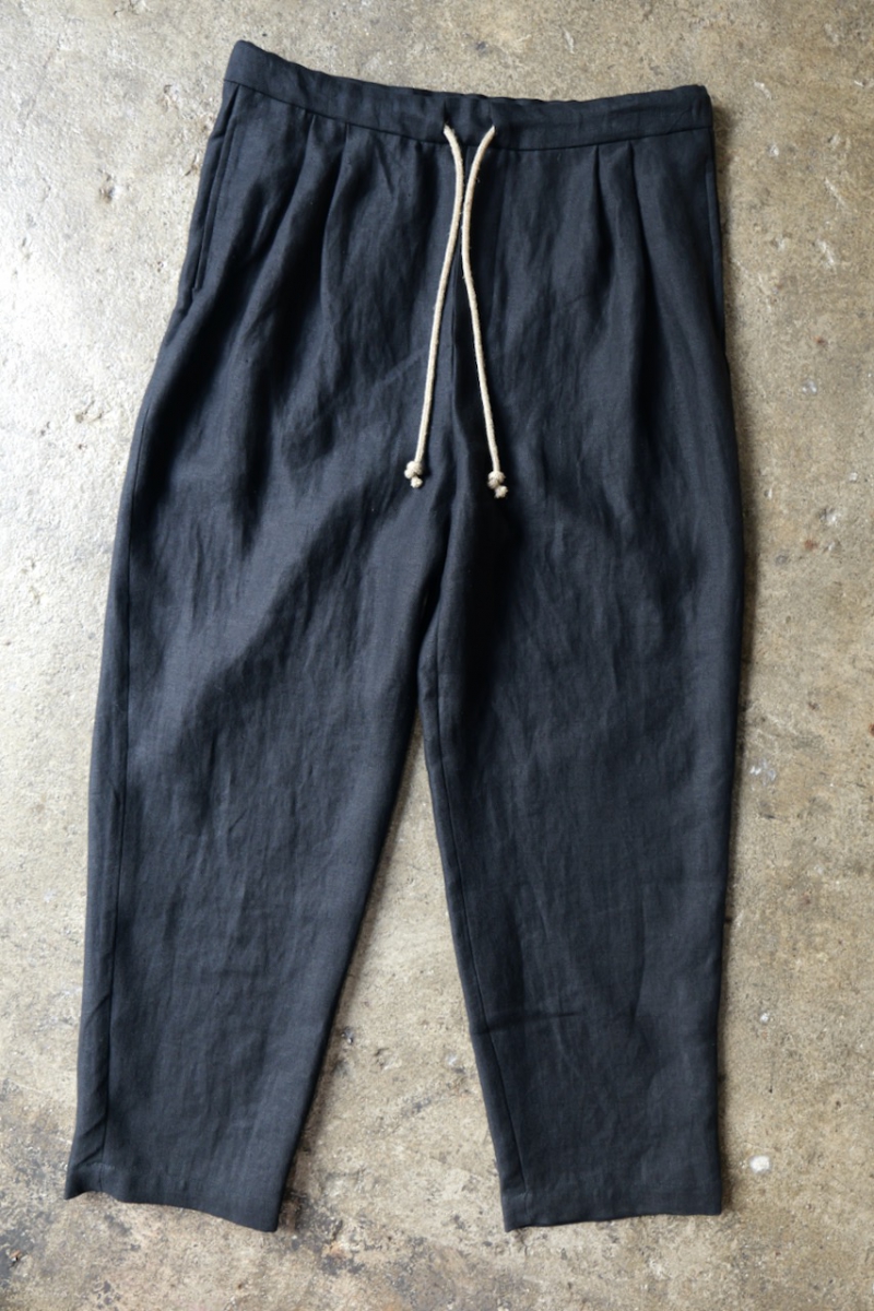 FABRIC WASHED LINEN DRAWSTRING 2TUCK TROUSERS.