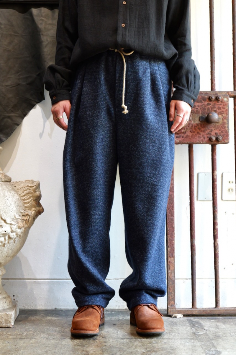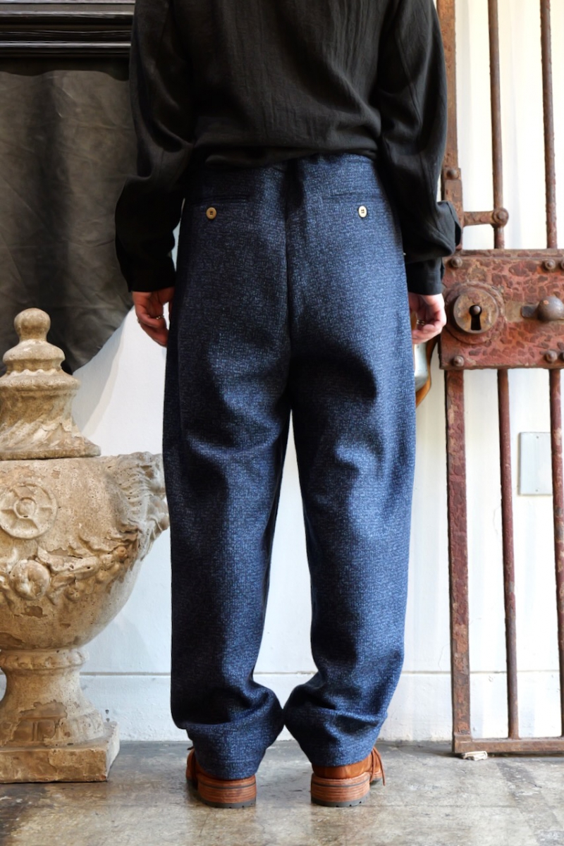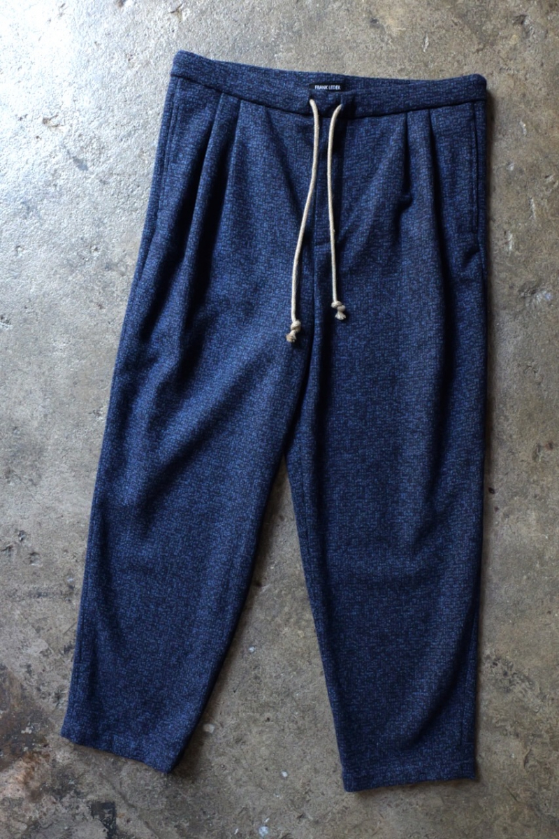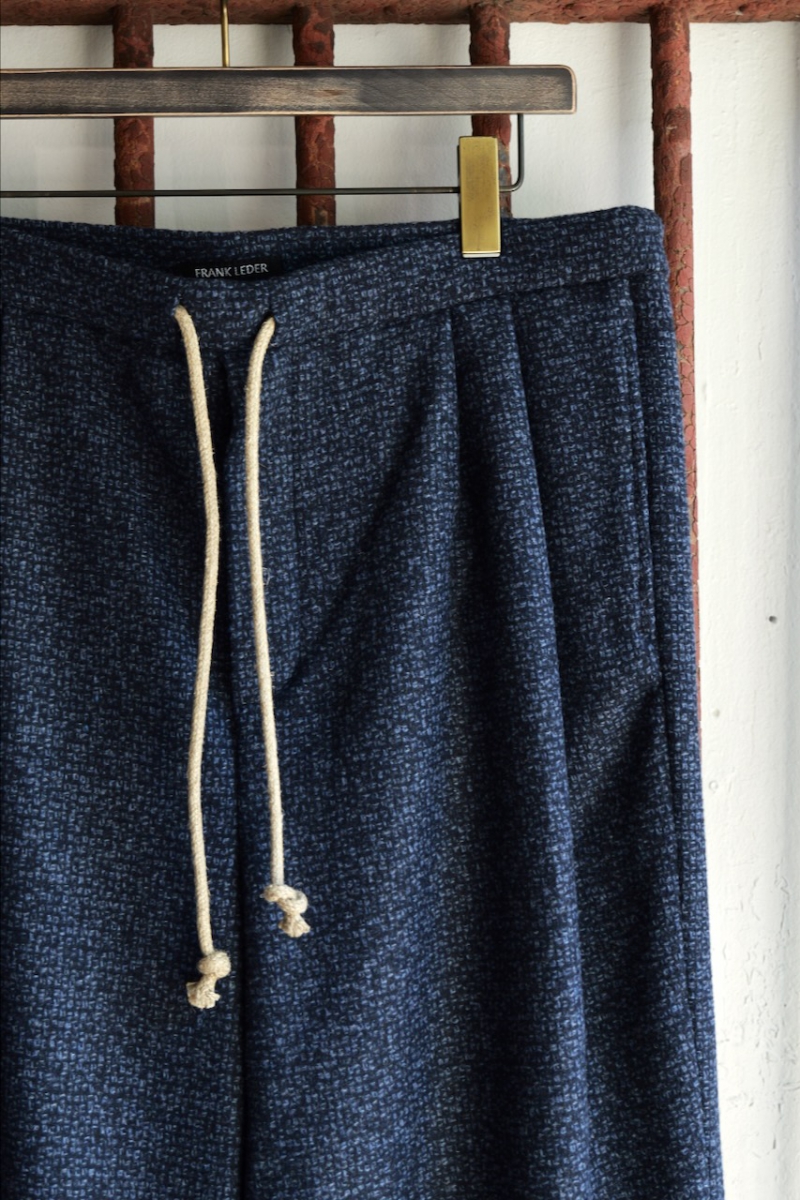 0523023-T4. NAVY WOOL 2TUCK DRAWSTRING TROUTHER. 39(Navy). FRANK LEDER.