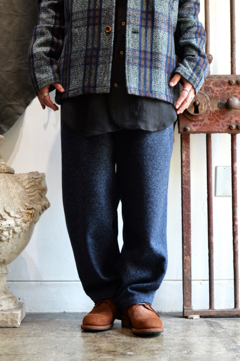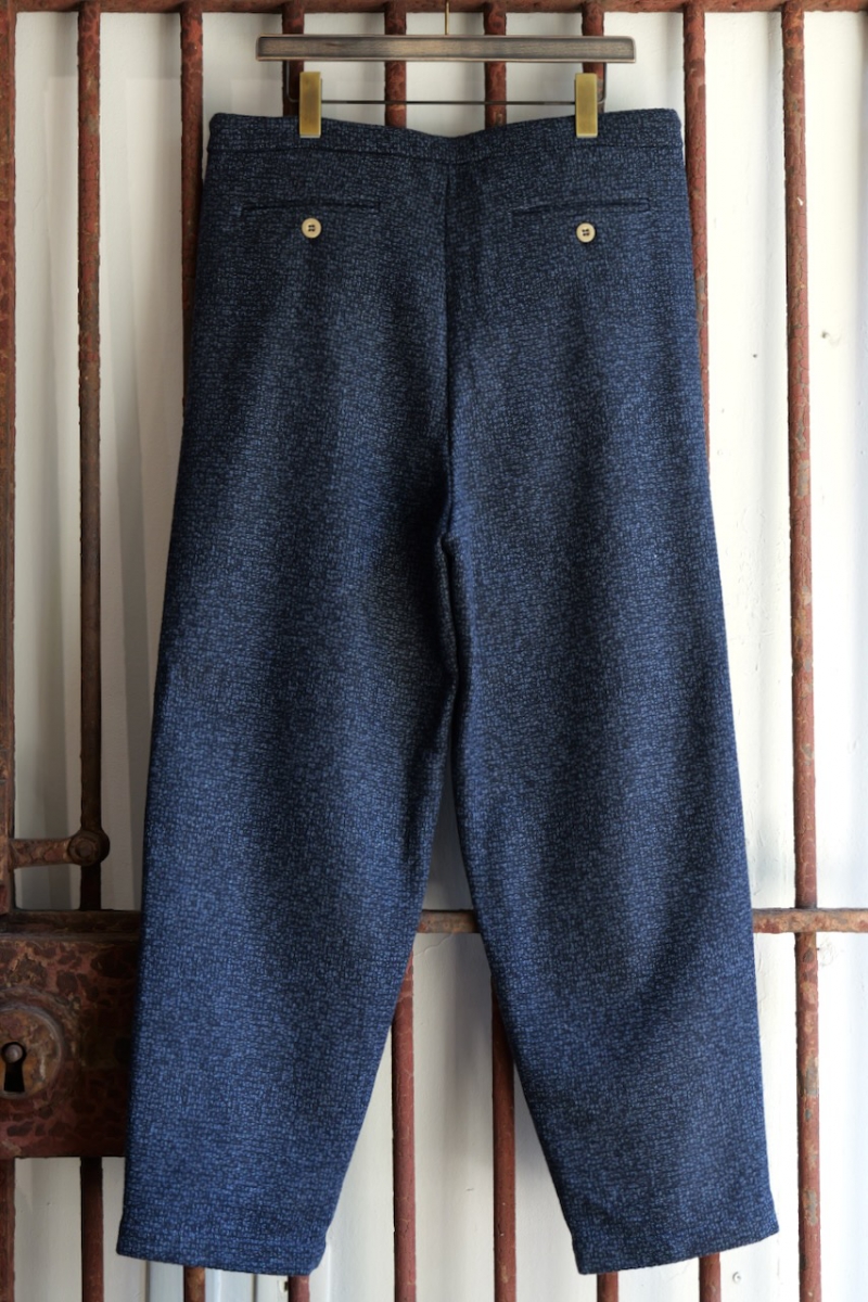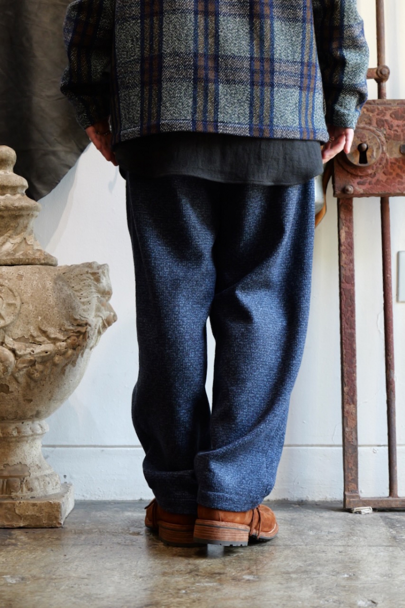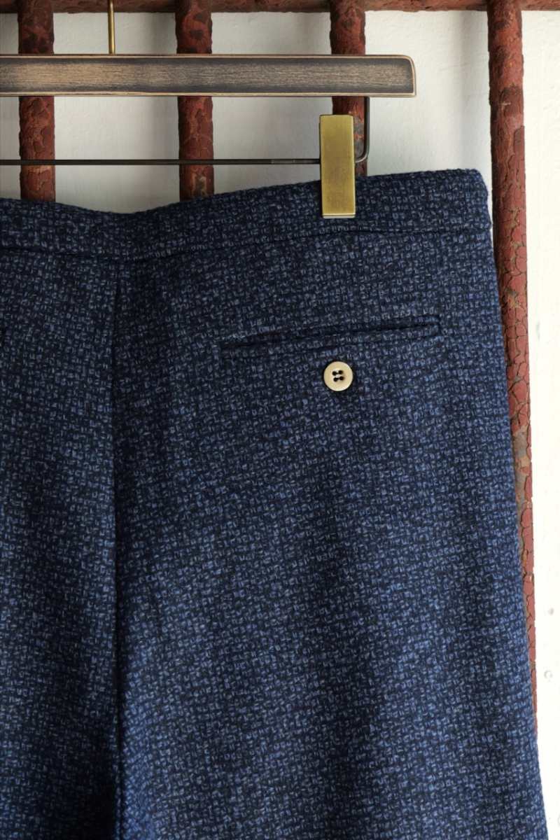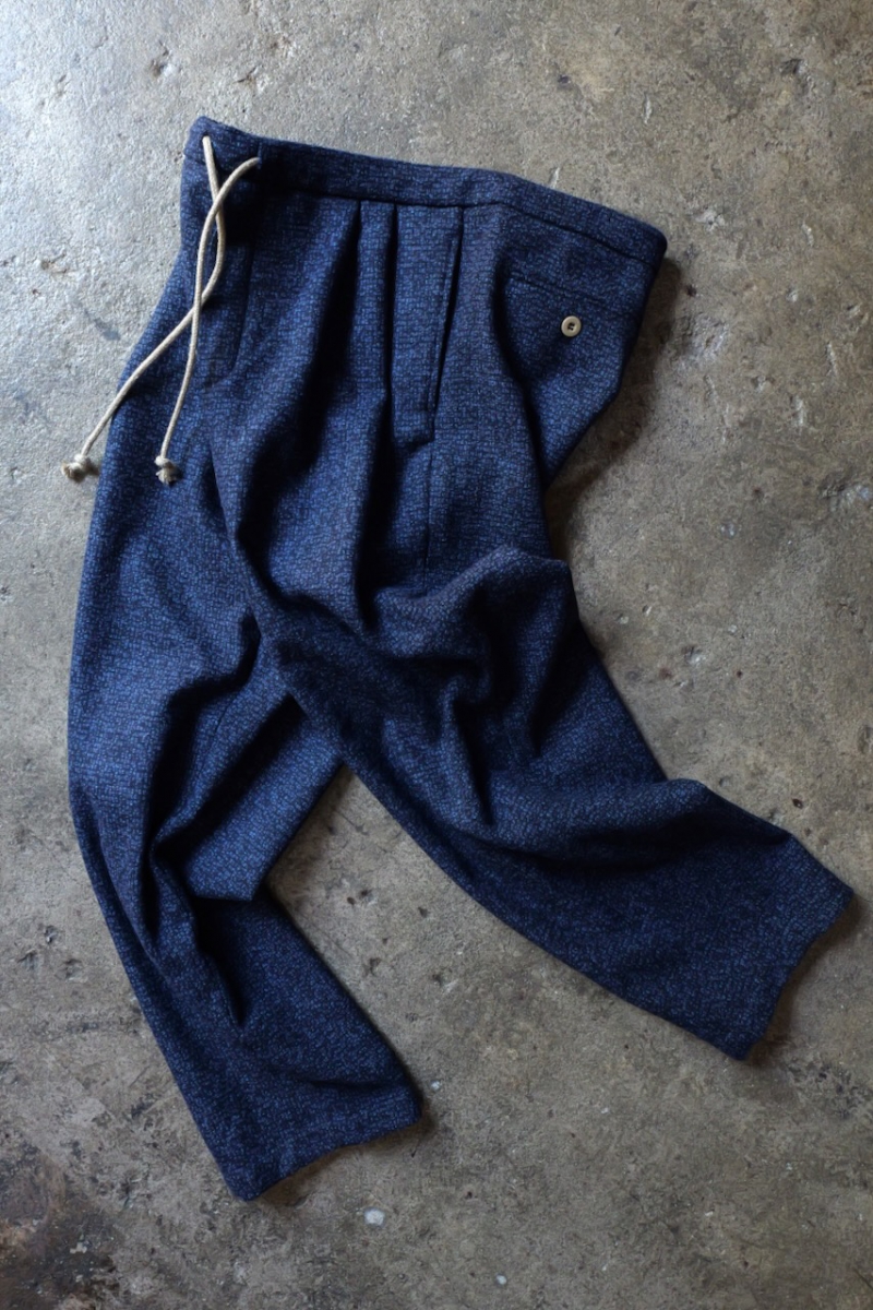 0523023-T4. NAVY WOOL 2TUCK DRAWSTRING TROUTHER. 39(Navy). FRANK LEDER.