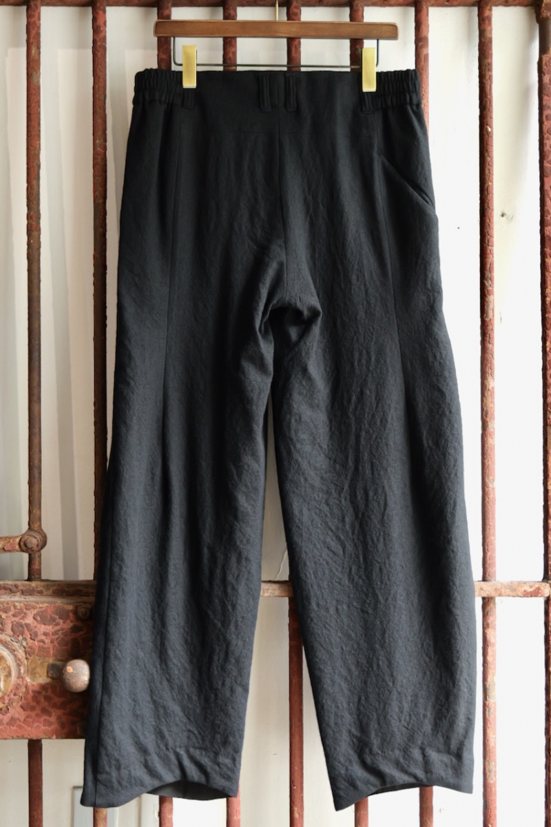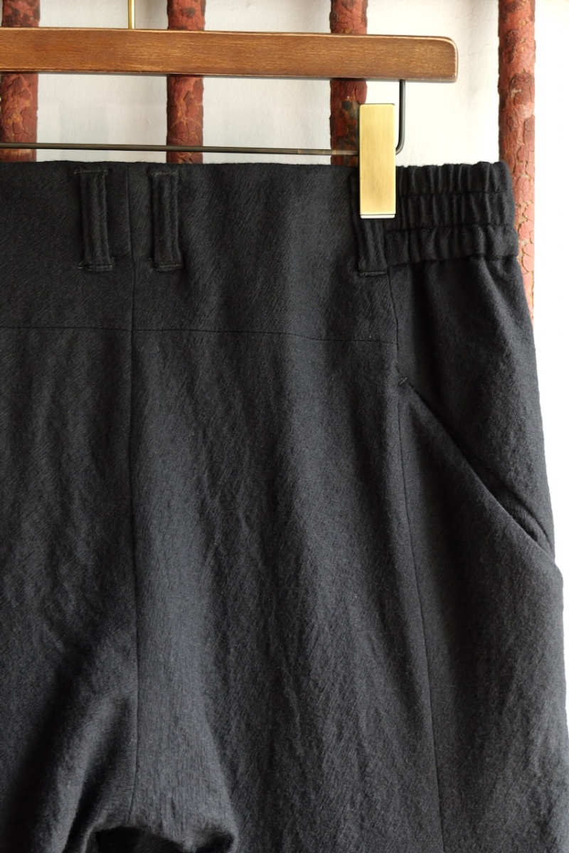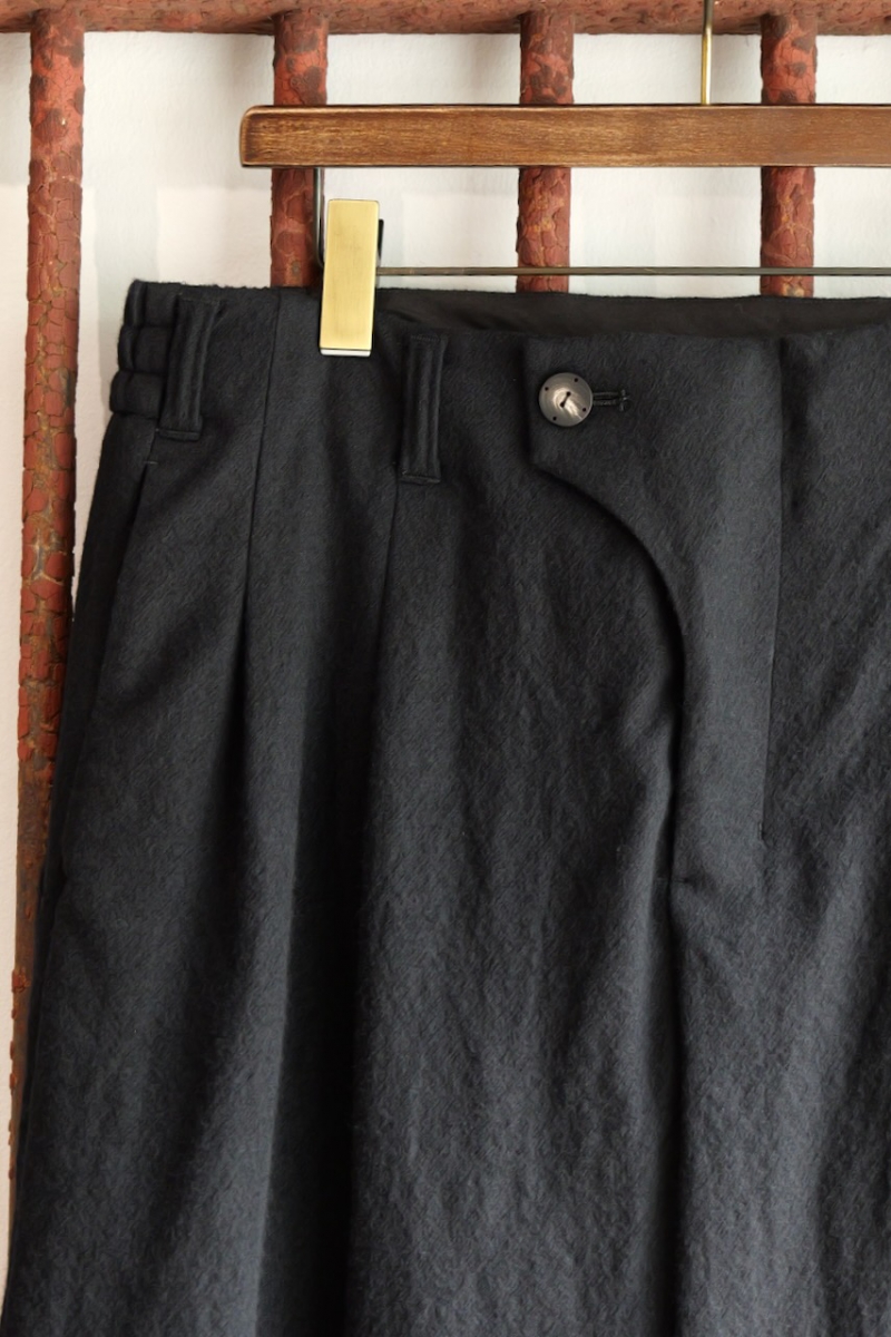 膝周りのタックと湾曲したシルエットが立体感とシワを作っています。