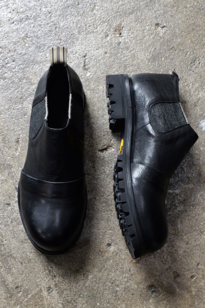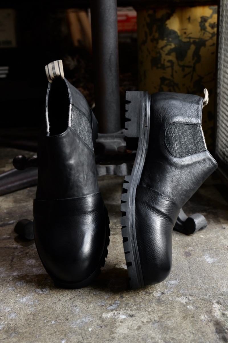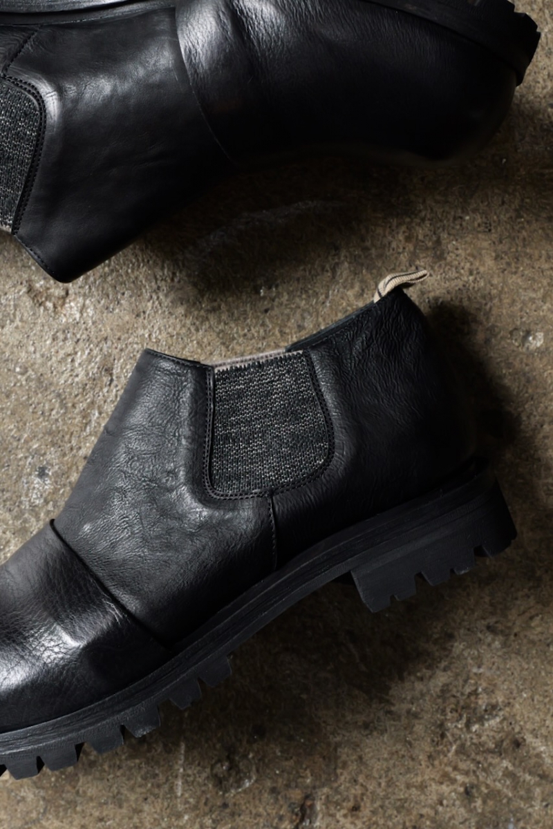 ・サイドゴアにはピースダイ(後染め)をした伸縮素材が使われています。