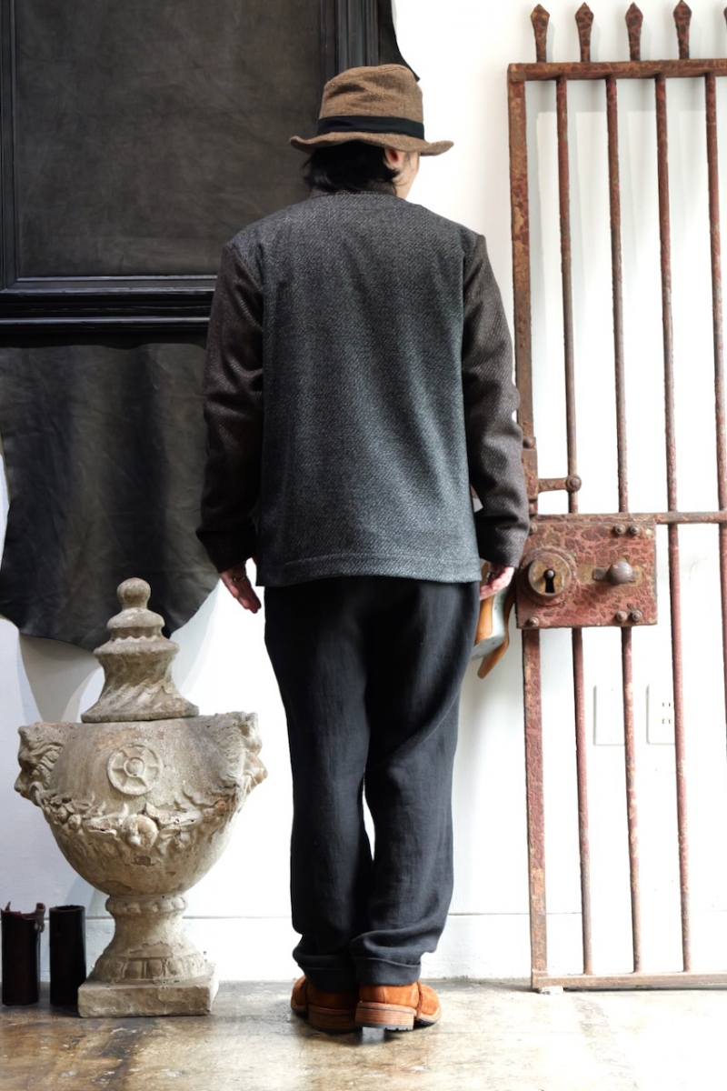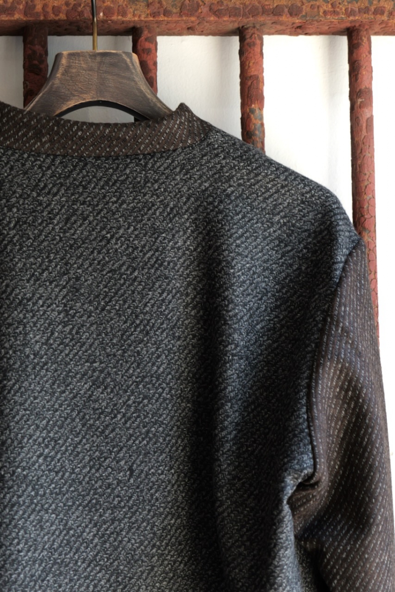 このブランドの生地は引きでの見た目、よってじっくり見た時の生地の織りの面白さは秀逸です。