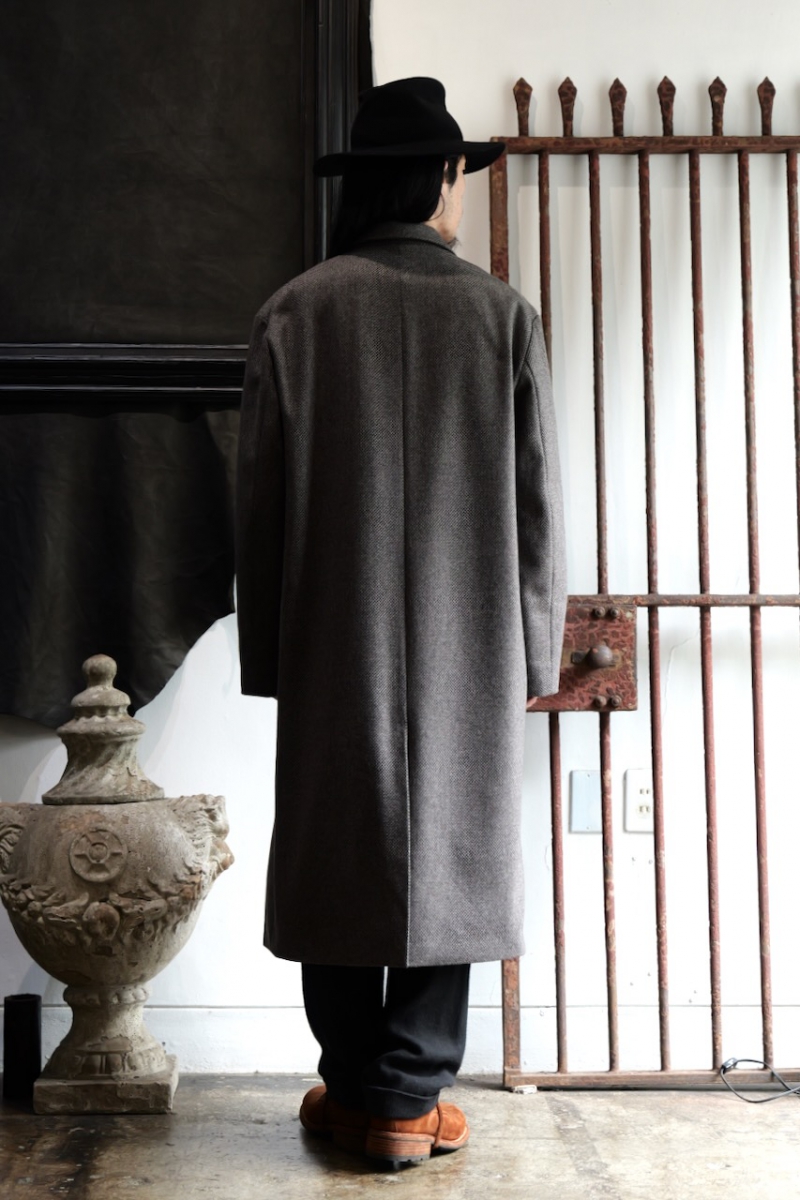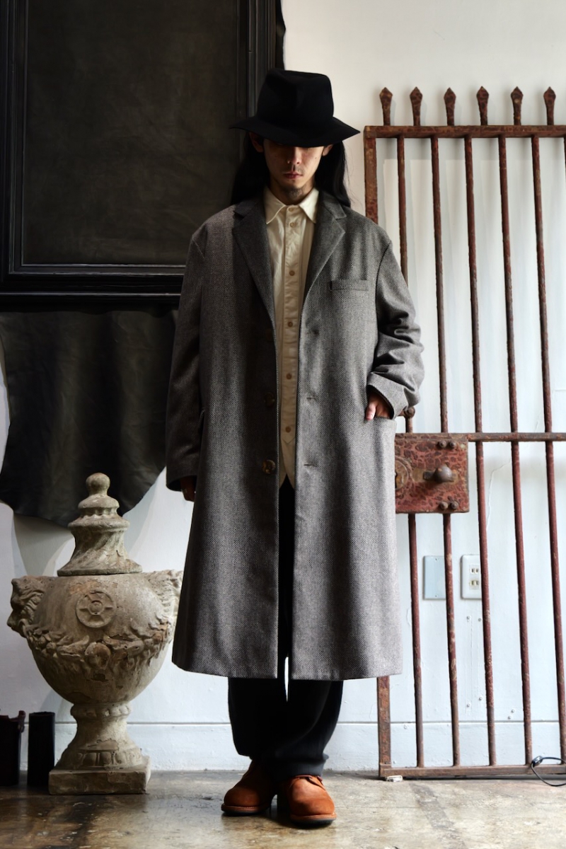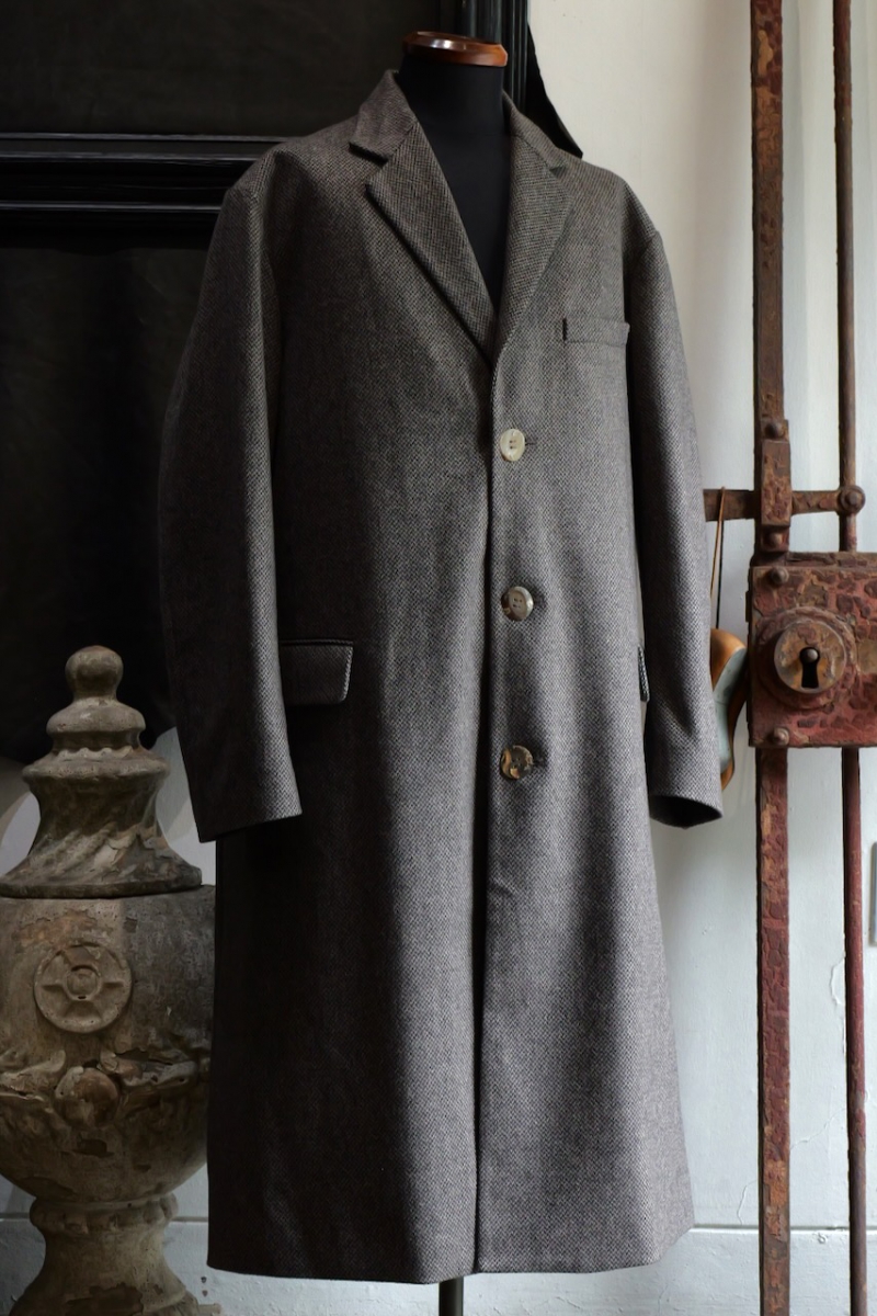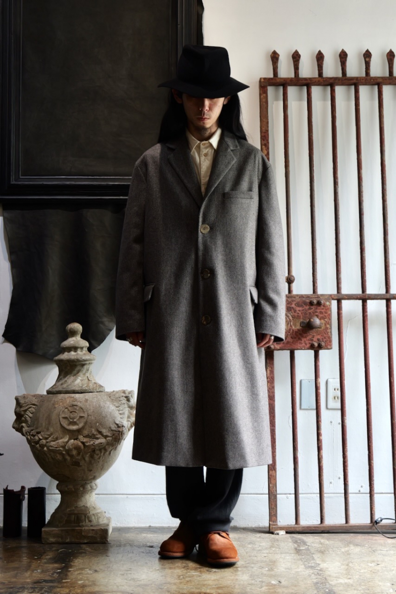 古い映画に出てくるようでいて新しいシルエットがコートの味わいを深めています。