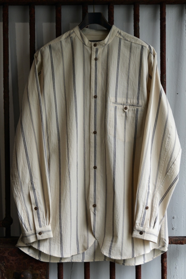 0316046-OSCG1. ORGANIC STRIPED COTTON STAND COLLAR SHIRT. FRANK LEDER.